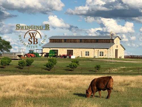 Welcome to the SWB Ranch! We are excited about our Beefmaster Cattle and would like to share them with you! Feel free to call Clay Howell our Manager 830-591-4497 for a Ranch visit or call! Mackie & Clay like to show off our Swinging B Beefmaster cattle.